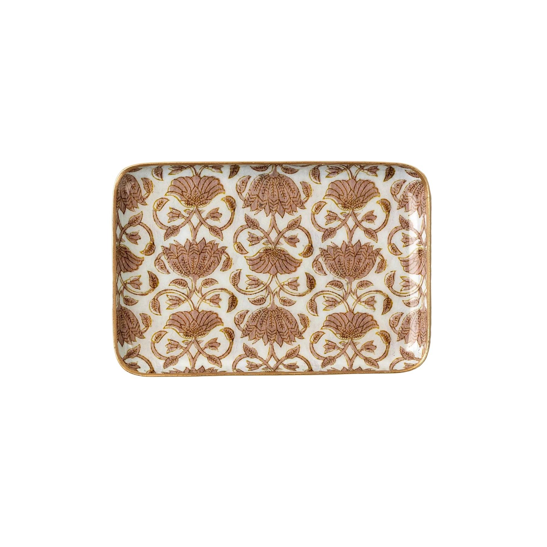 Inspired by Indaba’s hand block printed pillows, the Loti Enamel Tray brings pattern, colour, and craftsmanship into your home. A digital print of the original textile design is transferred directly onto the iron surface, then finished with a vintage inspired enamel coat and hand-painted gold edging. In sun-washed pinks with golden accents, it’s a decorative tray that blends artistry and function beautifully.