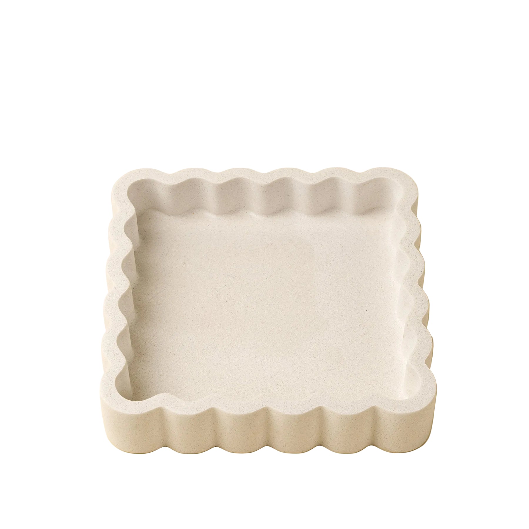 Add a soft, sculptural touch to your space with the Scalloped Jewelry Tray. Made from a marble composite that reuses powdered marble, this decorative tray is both beautiful and sustainable. Its rippled edges and subtle shiny flecks make it perfect for displaying jewelry, perfumes, or trinkets in the bathroom or bedroom.
