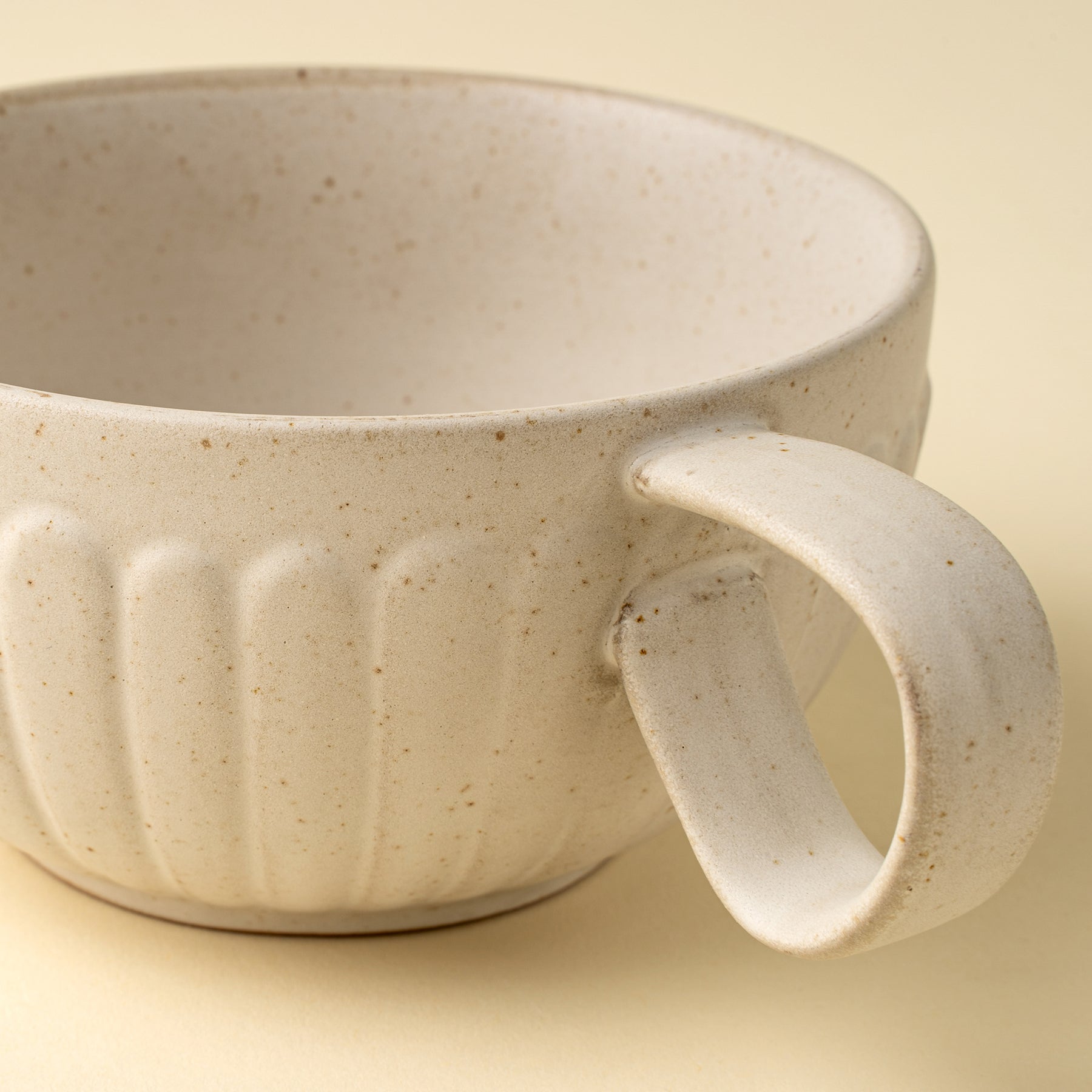 Materials & Composition: Handmade from stoneware with a creamy warm glaze and a gently curved shape.