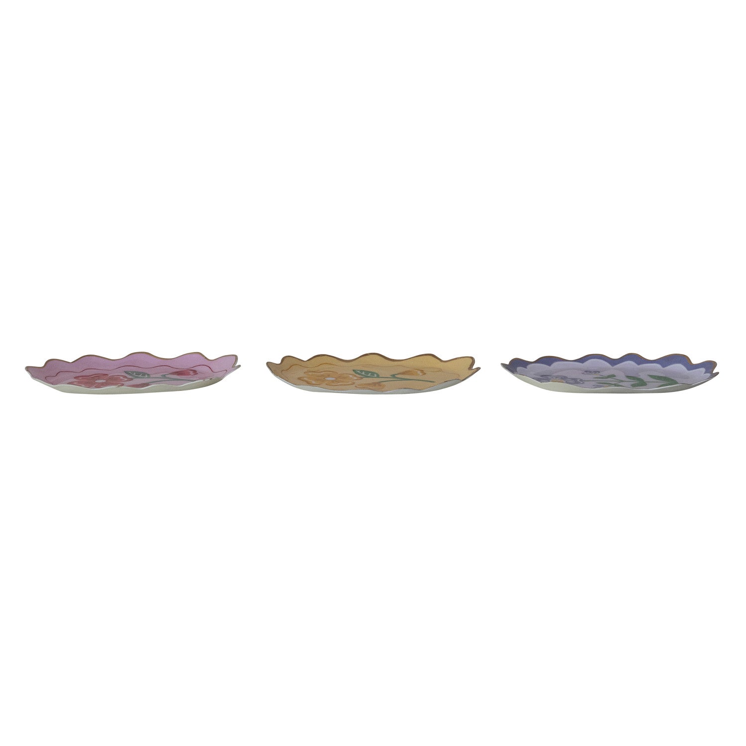 Elevate your home décor with this charming metal scalloped tray, featuring a delicate enamelled flower print that brings warmth and character to any room. The scalloped edges add a refined, vintage-inspired touch, while the durable metal construction ensures lasting quality. Perfect for displaying on a coffee table, dresser, or shelf, this versatile piece combines functionality with aesthetic appeal. Whether you're organizing small items or simply showcasing it as a standalone accent, this tray brings understated elegance to your living space.